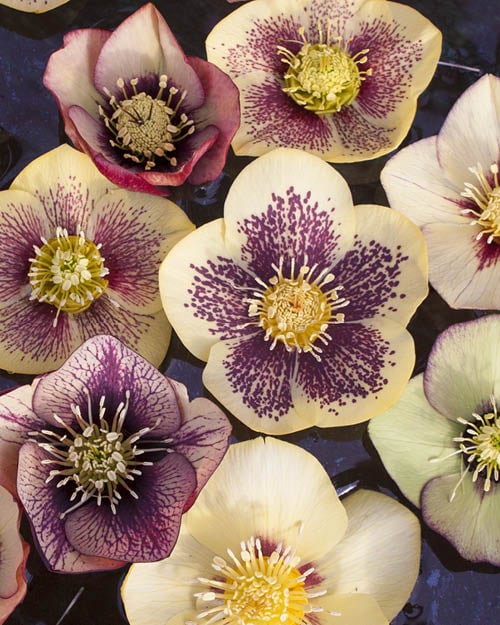 Hellebores and the Hybrid Lenten Rose are magic in the dead of winter. Just when you think it couldn’t get any drearier, they begin to erupt and bloom in glorious colors